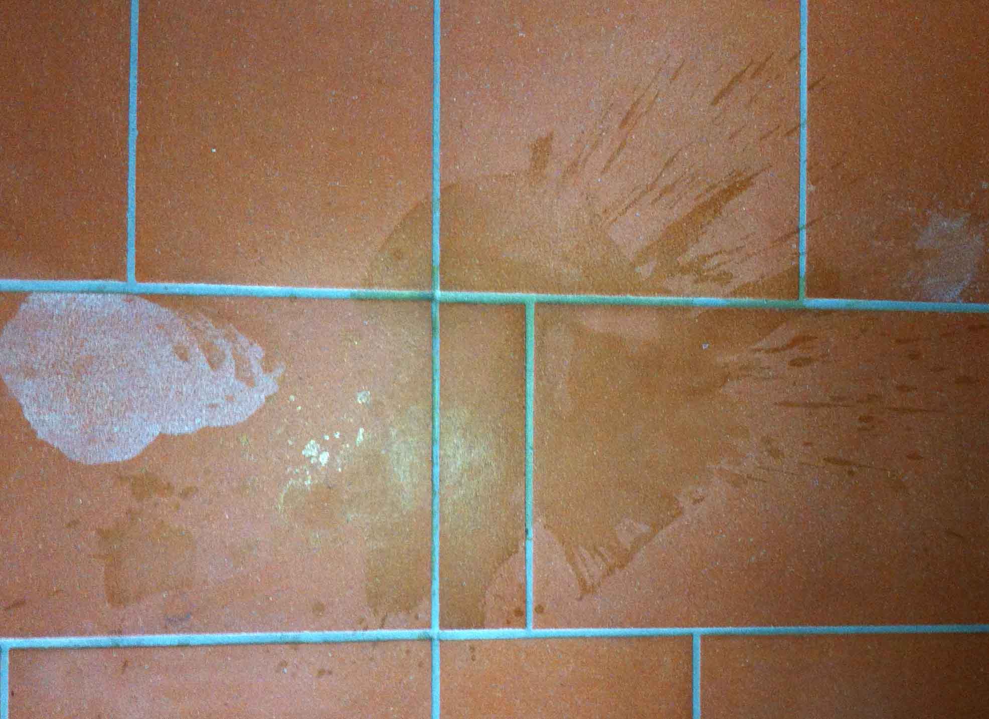 Ein kleines Missgeschick mit grosser Wirkung: Ein Fläschchen mit einem homöopathischen Medikament fällt auf den 3 Jahre jungen Tonplattenboden und zerbricht. Der flüssige Inhalt läuft nicht nur aus, sondern verspritzt den Boden auf einer Fläche von ca. 3 m2. Reinigungsversuche des Mieters blieben erfolglos, wonach er beim Plattenleger um Rat nachgefragt hat. Der Plattenleger bot uns zu einer Probereinigung auf welche gezeigt hat, dass es schwierig ist, alle diese Flecken, besonders die unzähligen Spritzer zu entfernen. Wir erhielten den Auftrag zum Entfernen der Flecken und konnten damit das aufwendige Ersetzen dieser Teilfläche verhindern.